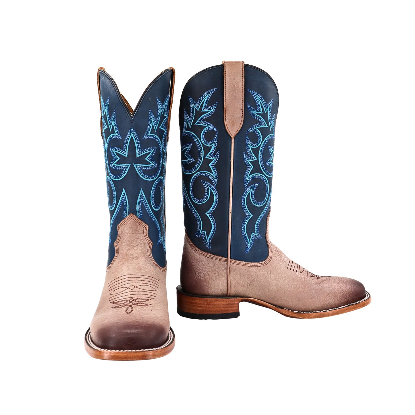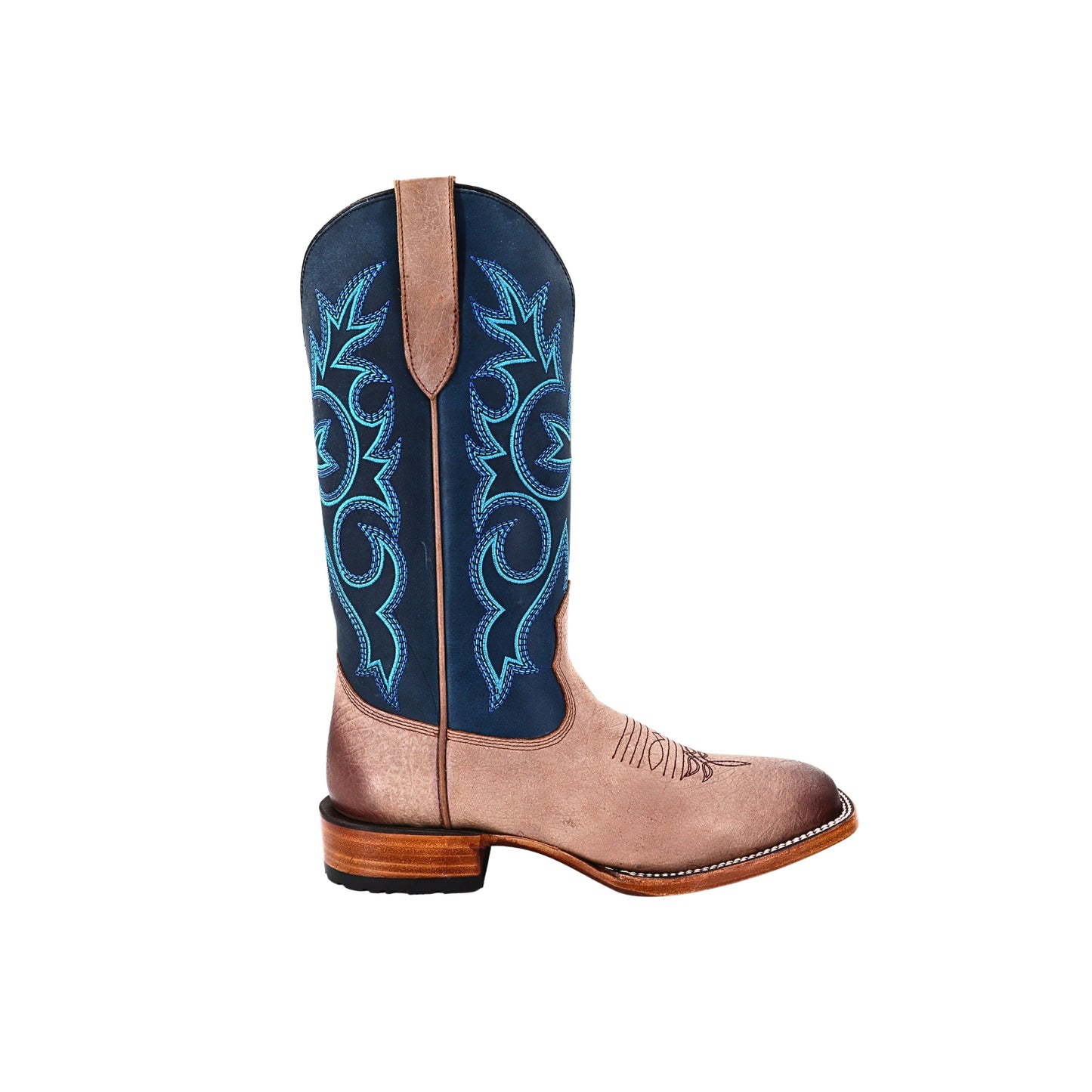 - Heel shape: Roper for stability and a Western influence