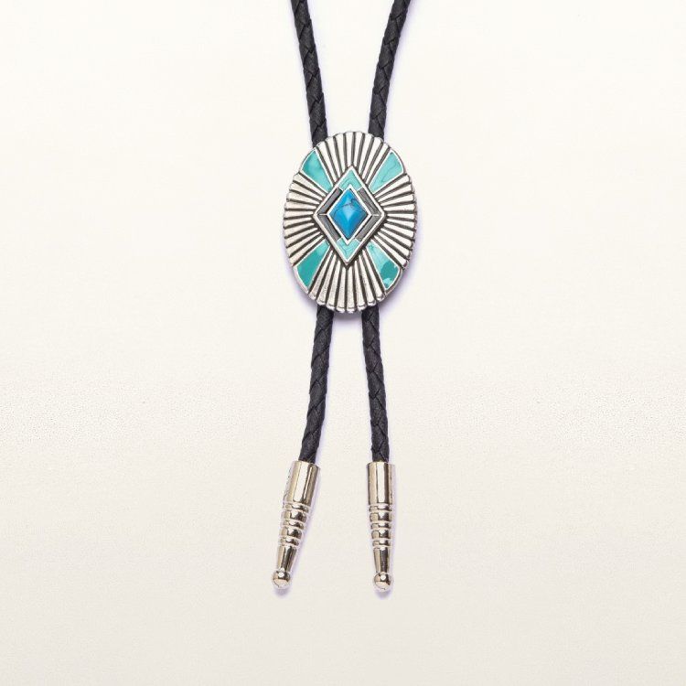 M & F WESTERN Oval Concho Diamond Bolo With Multiple Stones
