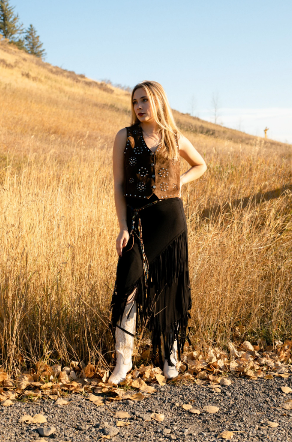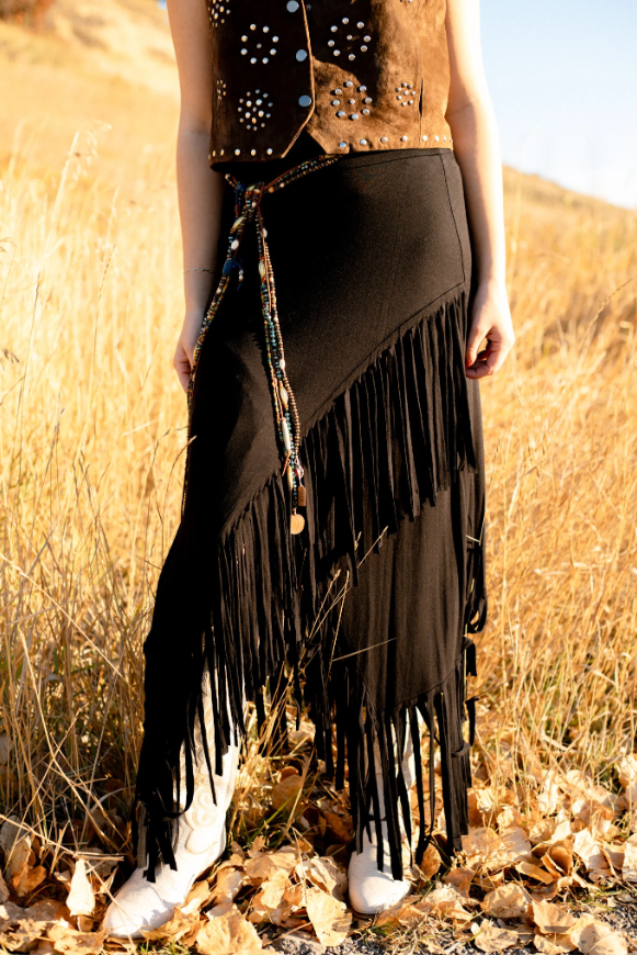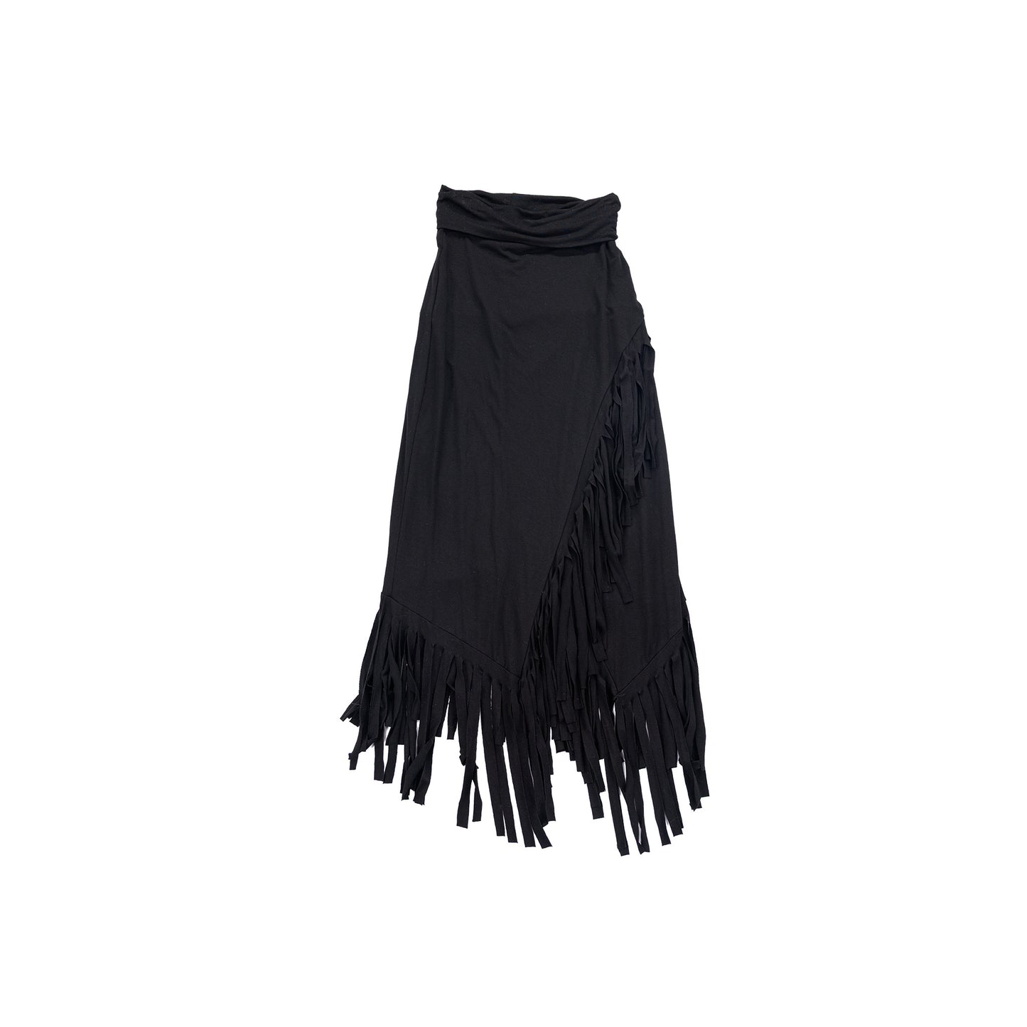 RHONDA STARK Asymmetrical Fringe Knit Skirt