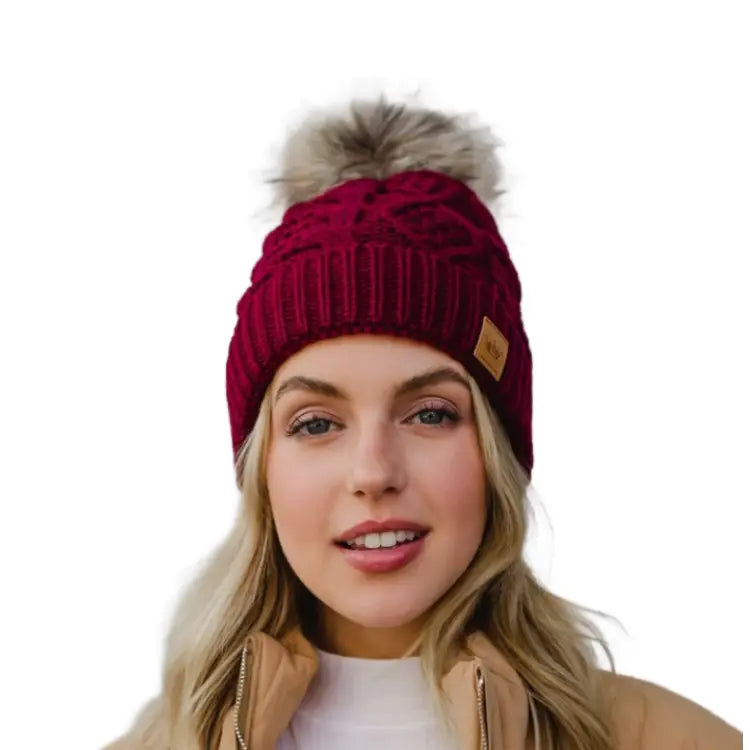 PANACHE Cable Knit Pom Hat
