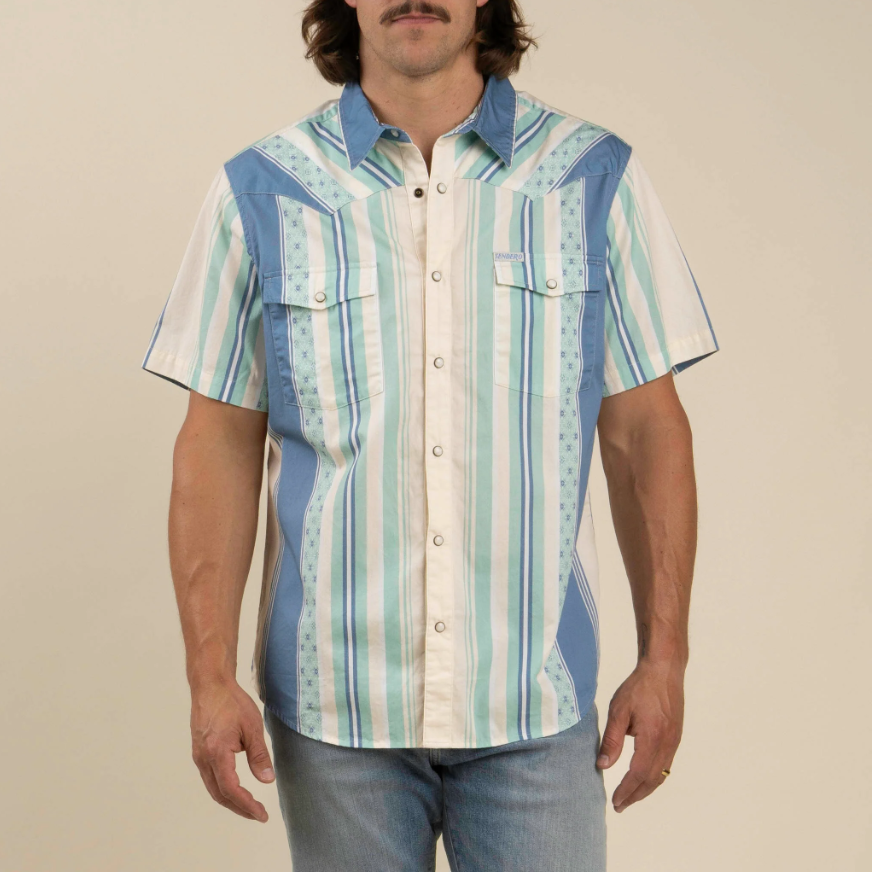 SENDERO The Wyatt Pearl Snap Short Sleeve Stripe Shirt