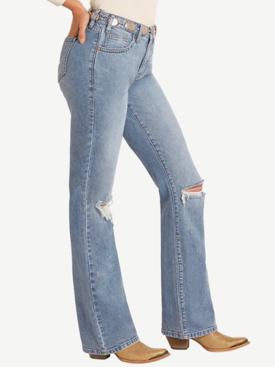 ROCK & ROLL Ladies Distress High Rise Boot Denim