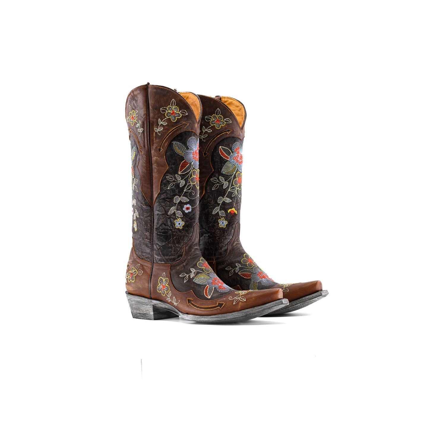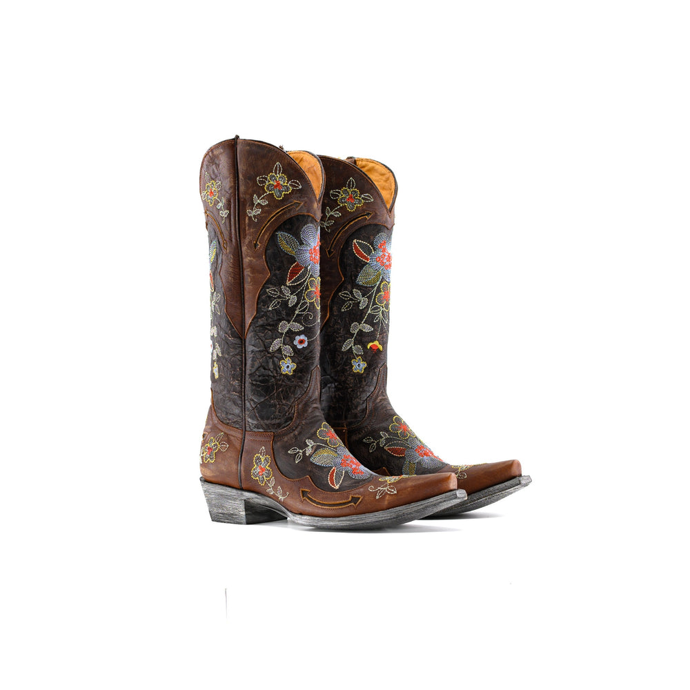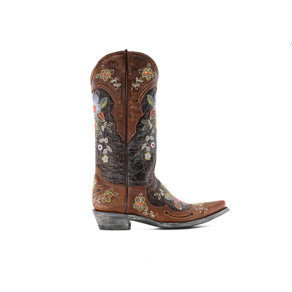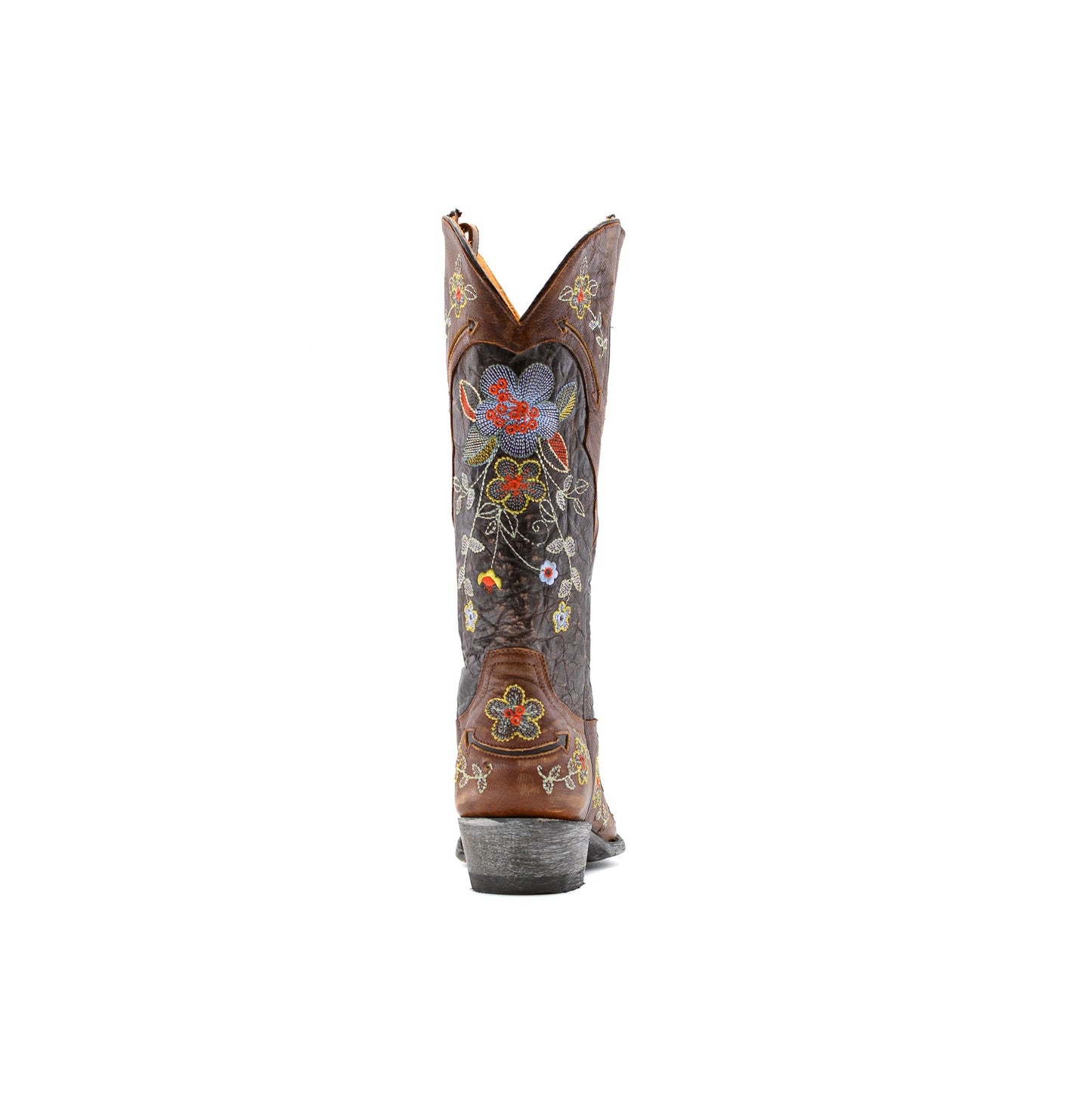 These Bonnie boots blend handcrafted artistry with rugged western charm. The distressed leather is accented by colorful floral stitching, and the used snow sole finish gives them a vintage feel. With a soft leather insole, smooth lining, and sturdy pull tabs, they deliver comfort and character in every step. Each pair is uniquely hand-finished with natural dye variations.