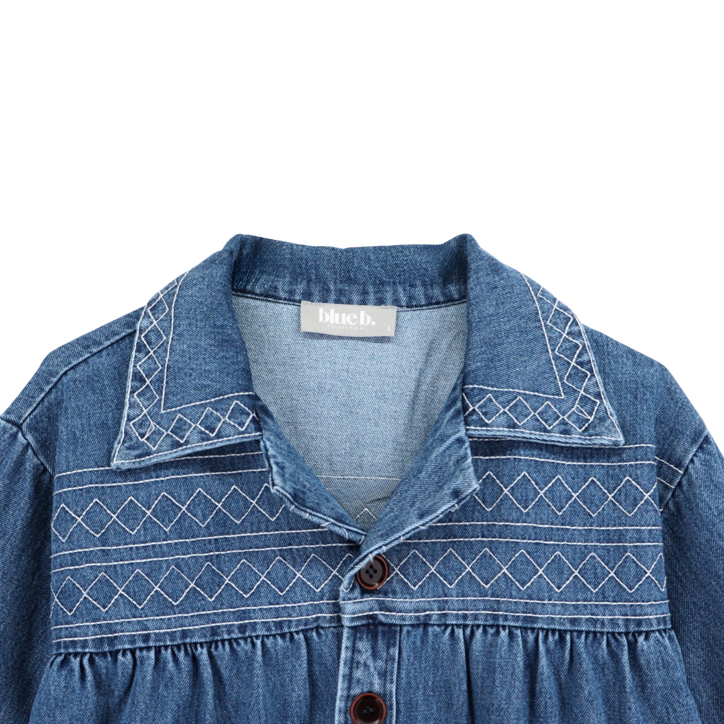 BLUE B Embroidery Detailed Oversized Denim Jacket