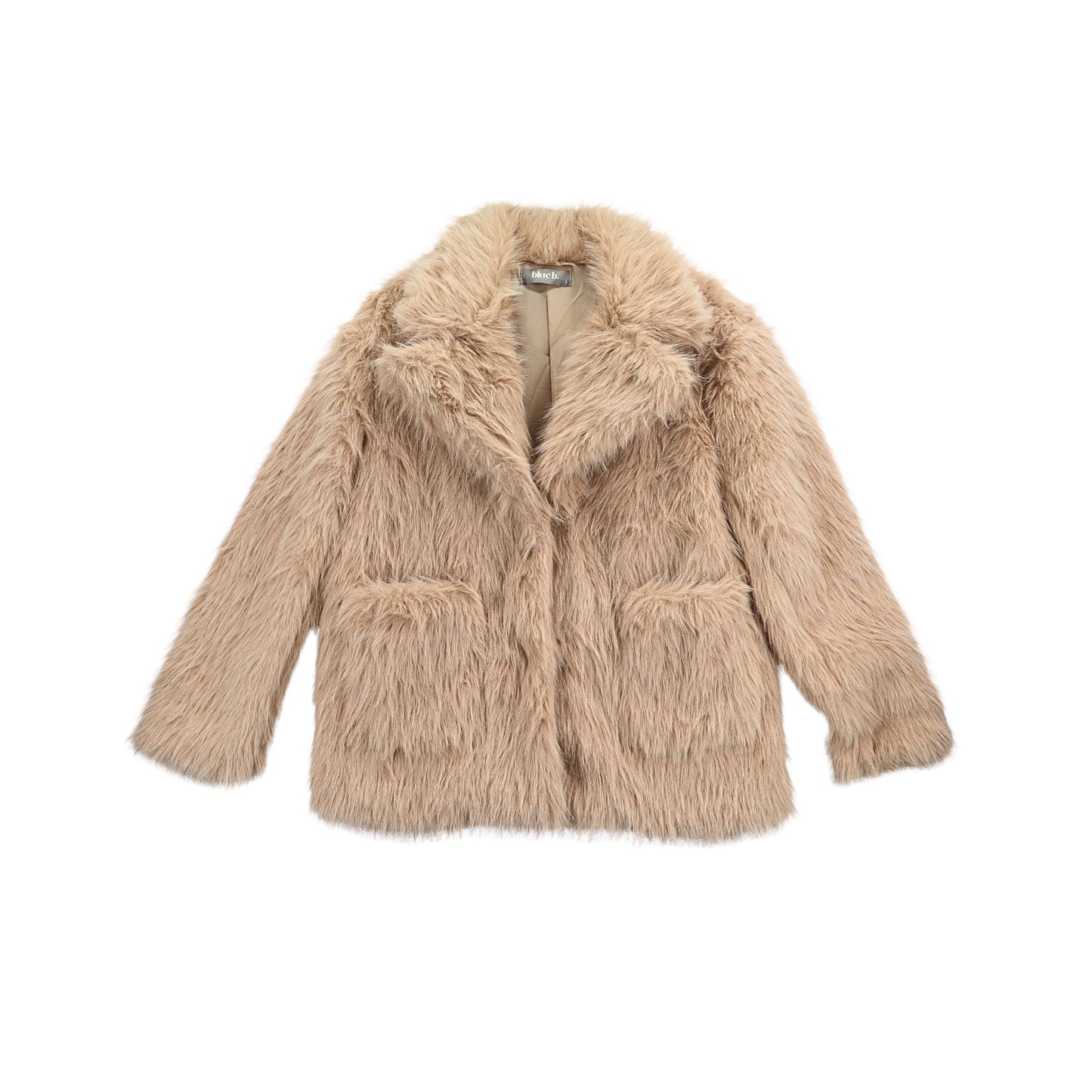 BLUE B Shaggy Notch Collared Faux Fur Coat