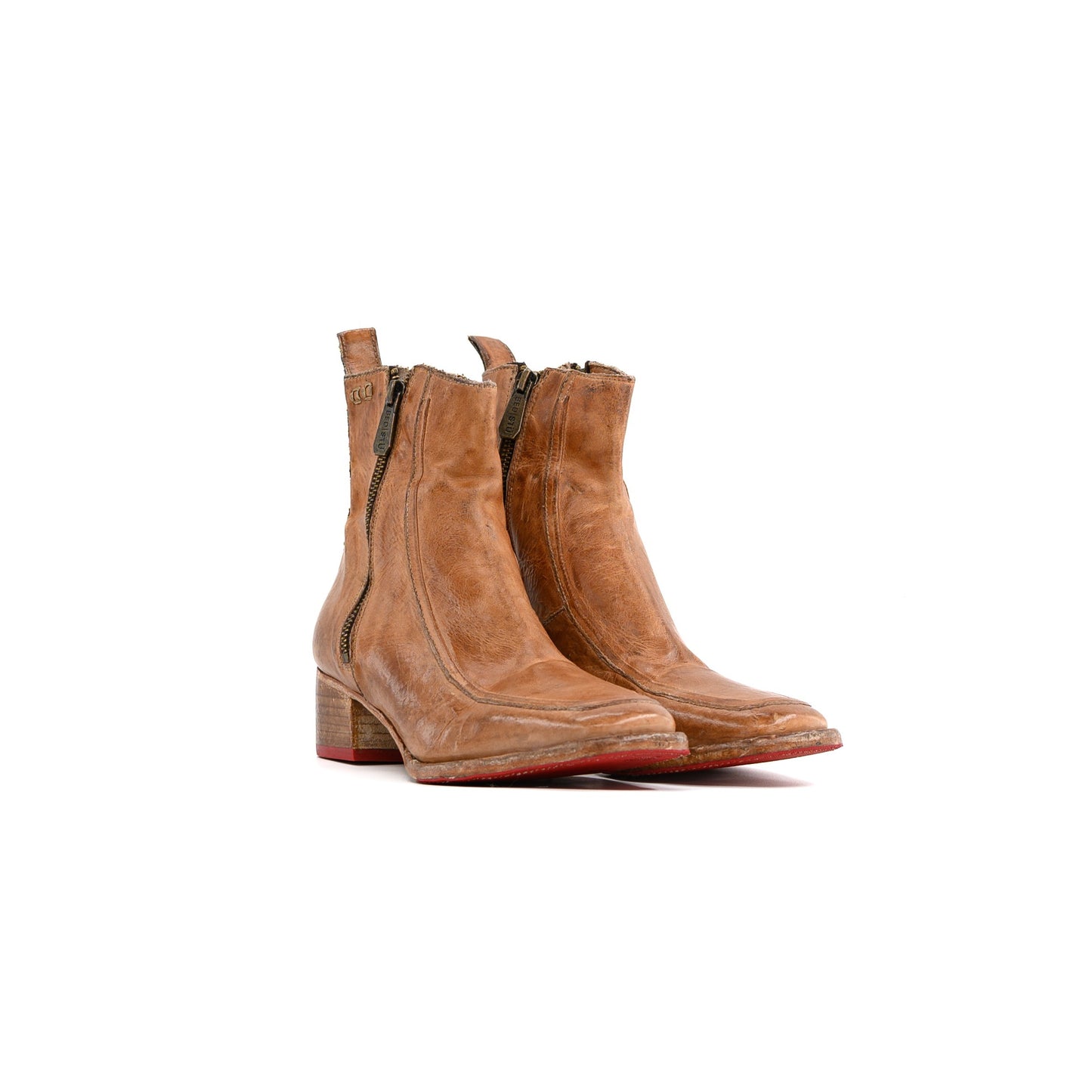 The Bedstu Bitsy boots embrace understated elegance with a square toe silhouette and solid stacked heel that grounds every step. Dual side zippers offer easy on-and-off convenience, while a striking center seam draws attention to the quality leather construction. The design philosophy is simple: clean lines, purposeful details, no excess. These boots move with intention and command respect through their refined simplicity.