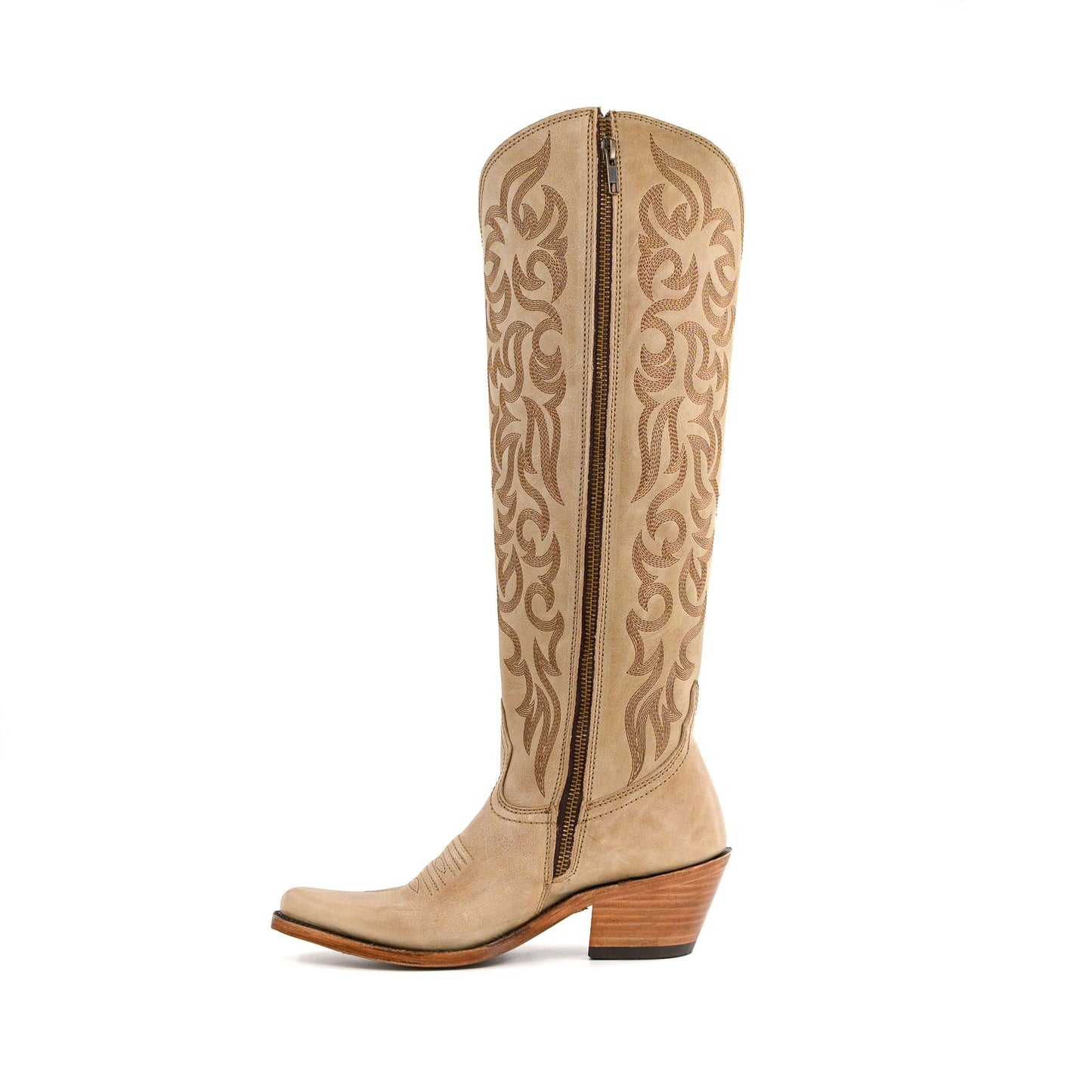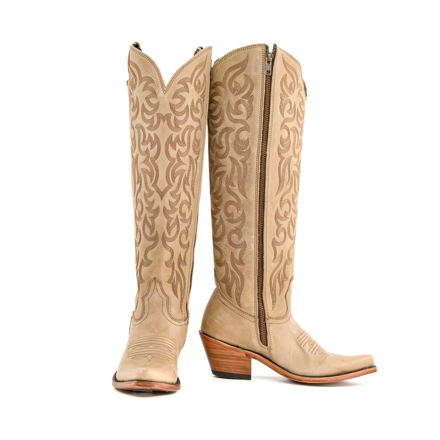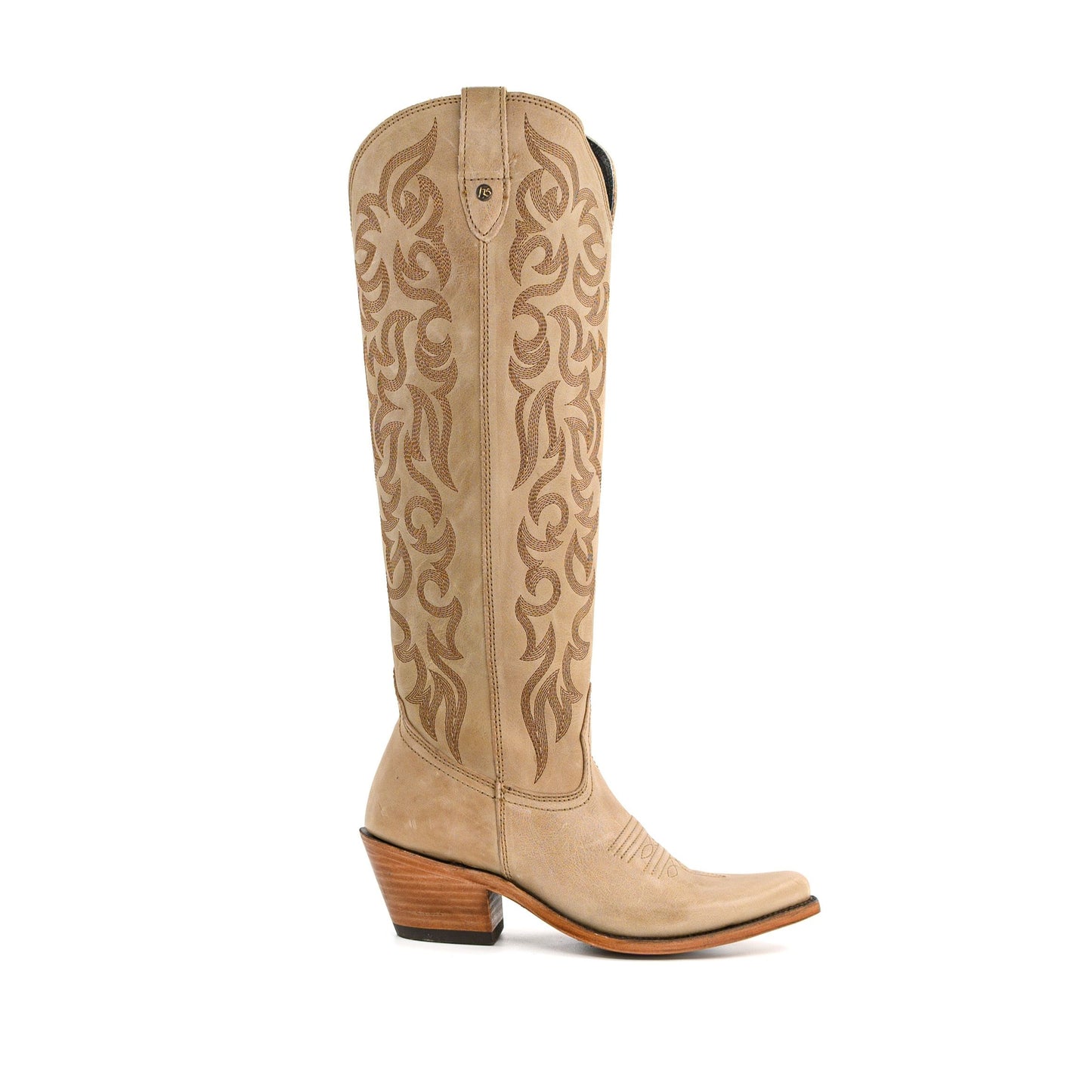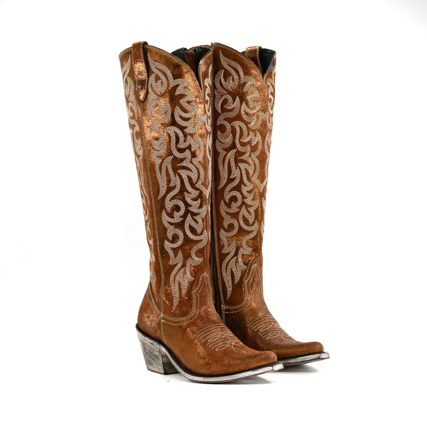 her full-shaft embroidery over striking high-quality leather. Made for women