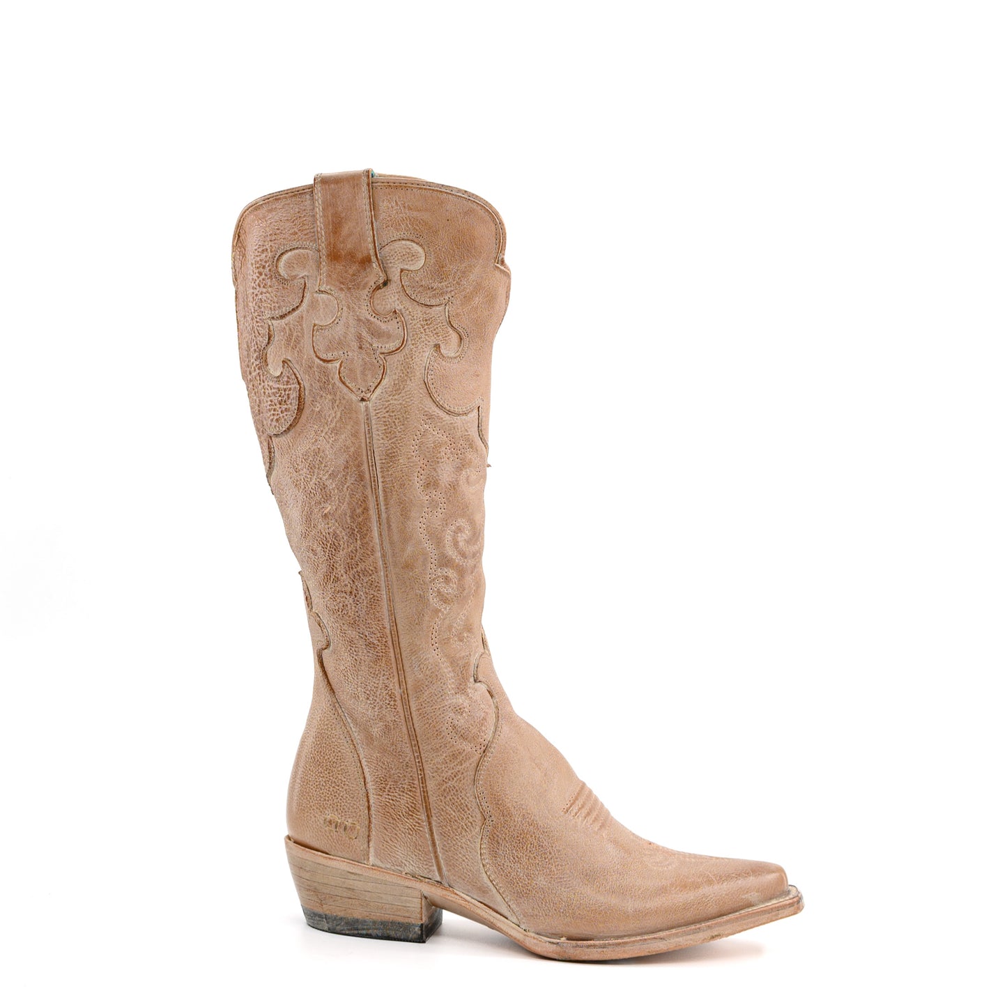 These western inspired tall boots stand out by their fleur-de-lis detailing. Made with chrome and formaldehyde free vegetable tanned leather, the Queen are both unique and convenient with the side zipper for easy wear. With graceful design accents and a beautifully shaped toe, these boots strike the perfect balance between fashion and function.