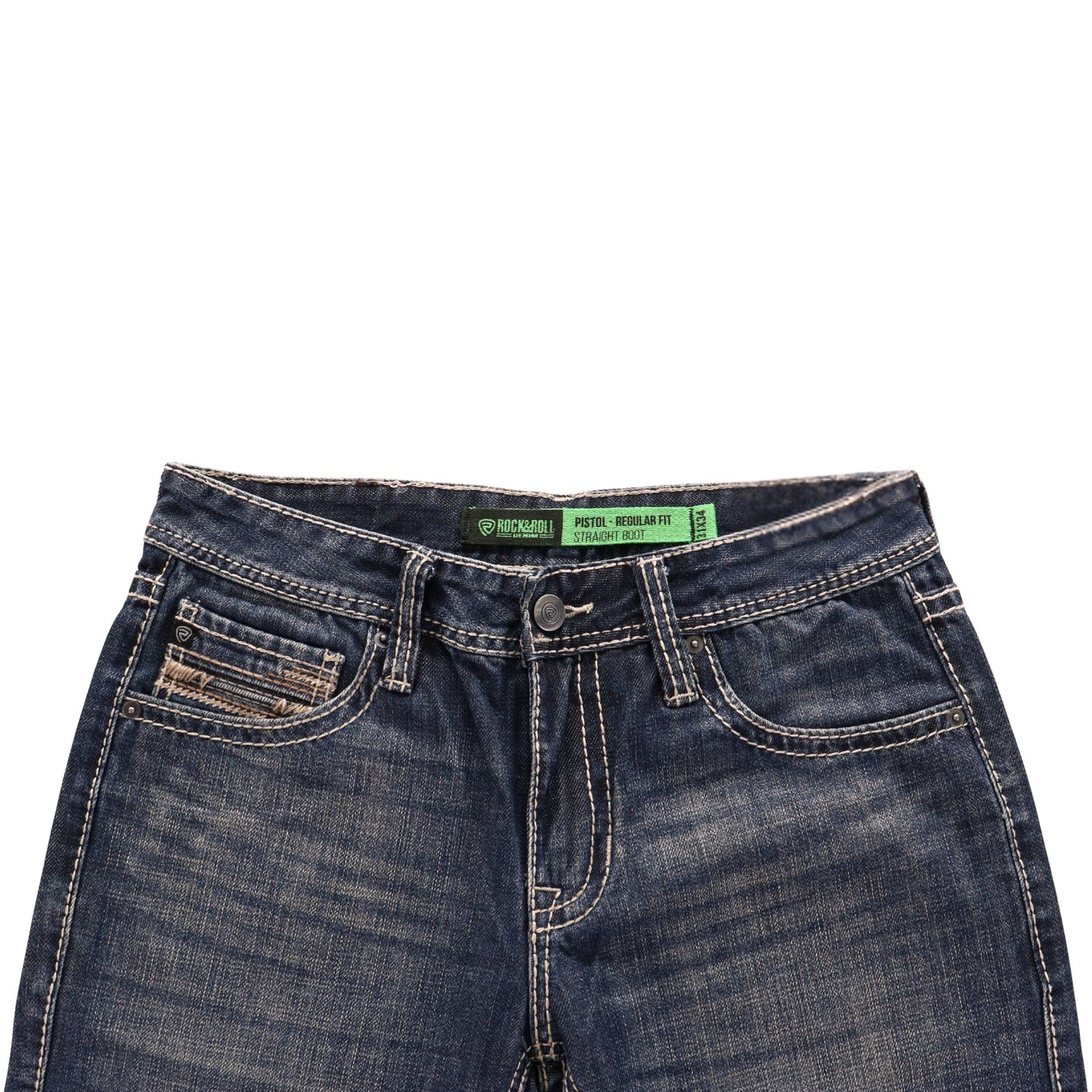 ROCK & ROLL Raised Denim EMB Pistol Straight Jeans