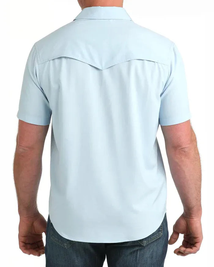 Engineered for all-day comfort, this CINCH camp shirt blends Western heritage with modern performance. The lightweight polyester stretch fabric moves with you, while the back yoke vent keeps you cool during active days. Finished with double front pockets, marble snaps, and signature logo embroidery, it's equally at home on the job site or weekend adventures. Classic styling that works harder than it looks.