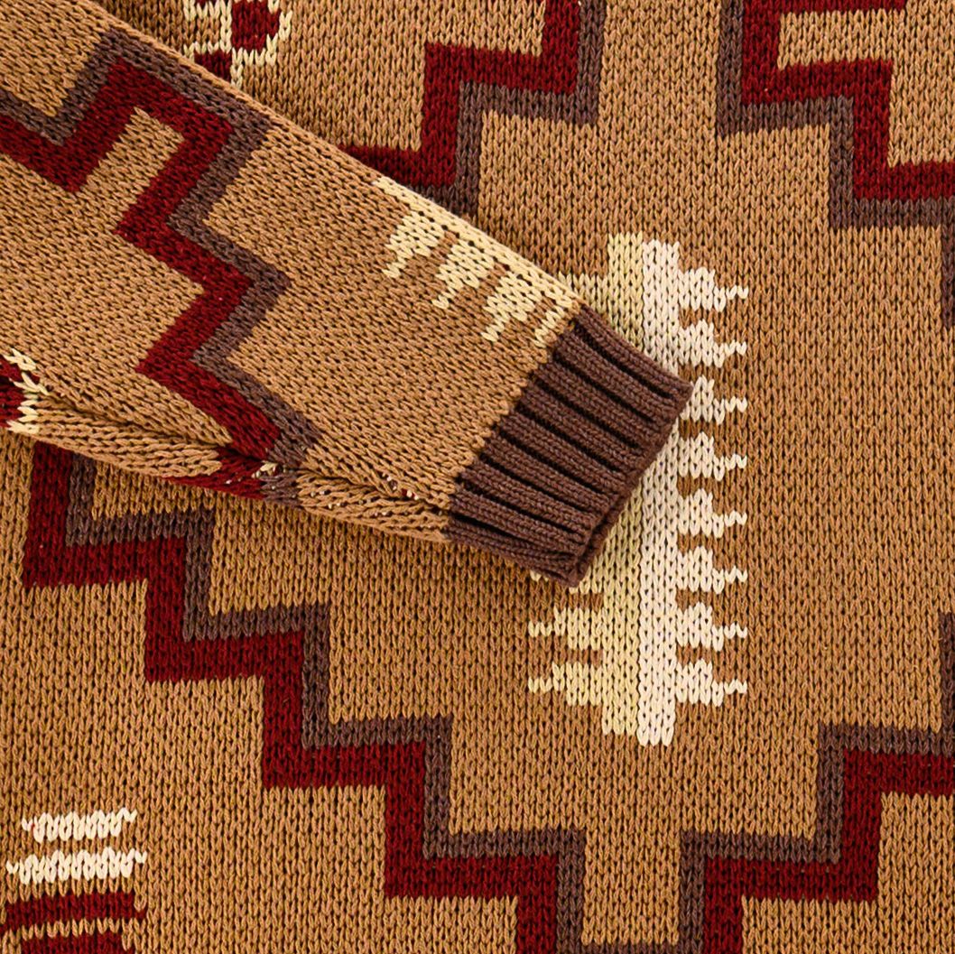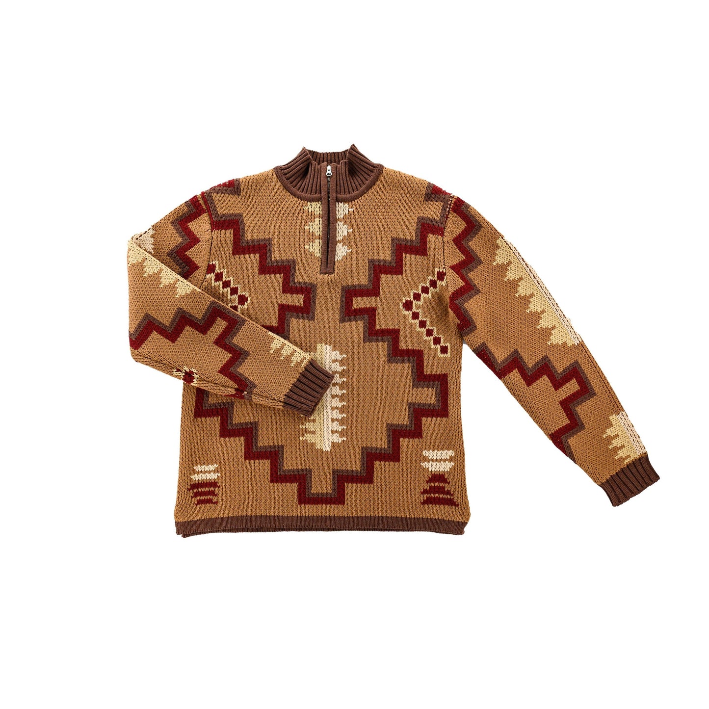 The Waylon Pullover: bold enough to stand out, comfy enough to never take off, and completely wife-approved. Deep brown and burgundy meet a sharp Aztec pattern, finished with a 1/4 zip and ribbed collar for effortless everyday style.