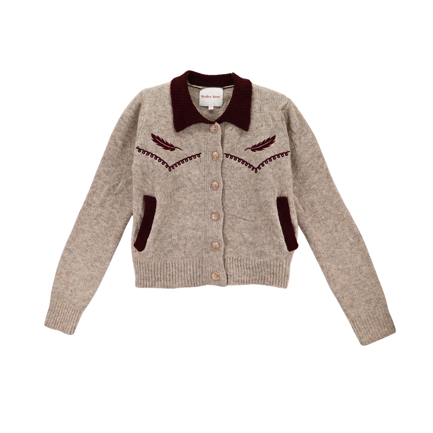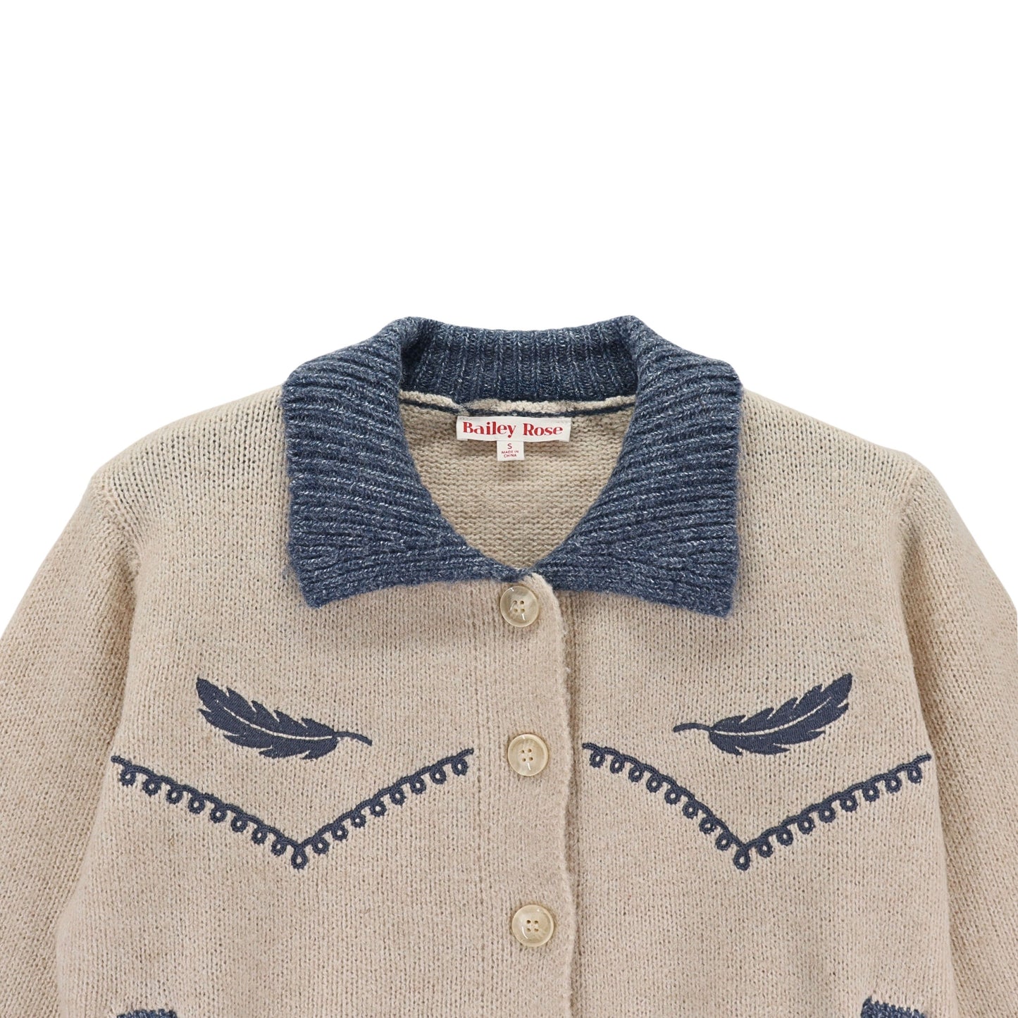 BAILEY ROSE Contrast Collar Western Cardigan