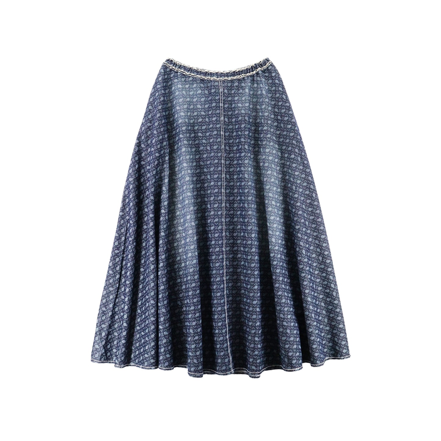 Fit: Classic circle skirt, fitted waistband with back elastic, midi length