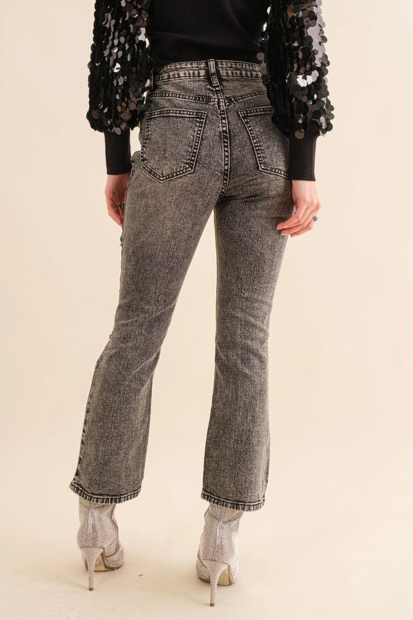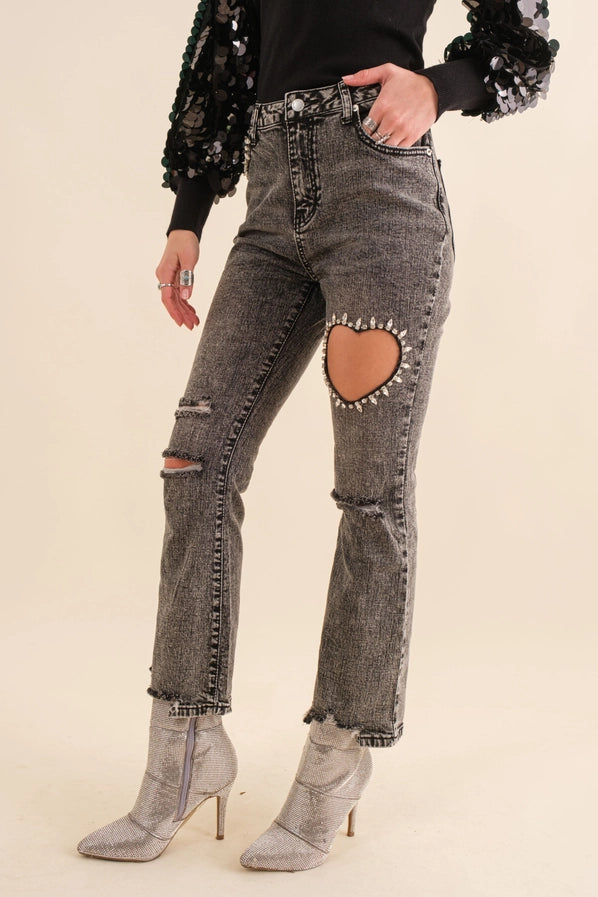 BLUE B Crop Stretch Ankle Frayed Button Heart Studded Cut Out