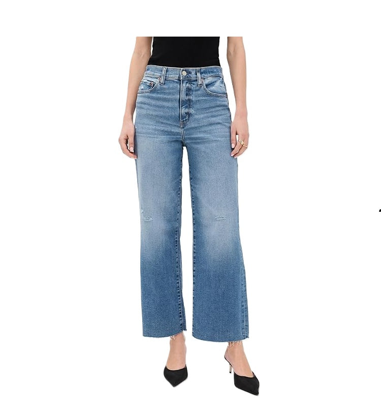 In an easy wide leg, this waist defining high rise features a scissor cut hemline. Constructed in our Hug denim has flattering stretch while still keeping the vintage inspired wide leg fit. Machine wash cold. The fuller the load, the more water we save.