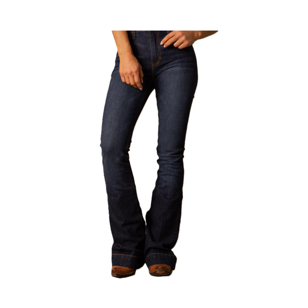 One of our most popular styles. With an ultra-high rise and super wide flare leg, the Jennifer flatters all shapes and sizes. The Jennifer makes a vintage western statement in the saddle or on the city streets with a dark wash and hand-sanding whisker details.