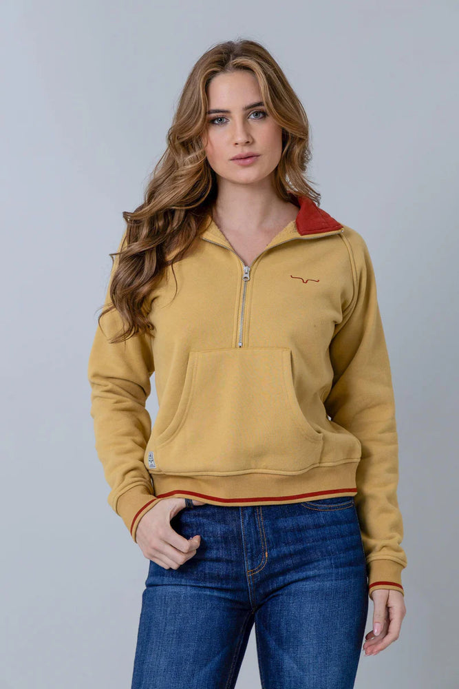 The Malta Cropped Quarter Zip brings style to a classic fleece staple. Accenting details add a pop of color to this functional pullover. The long zipper front pouch pocket allows for flexibility in ventilation while the seasons transition. The Malta is perfectly cropped for a fashionable look but a covered feel. The simple embroidered longhorn logo and contrasting hem striping adds interest to an already stylish piece.