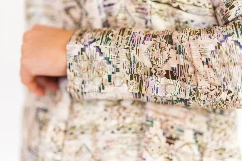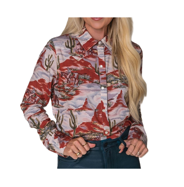 A reimagined balance of traditional western charm and contemporary chic, sure to become a staple in any coastal cowgirl’s closet. Both function and fashion-forward, this 100% Rayon darling has pearl snap buttons and a traditional front and back yoke for the perfect feminine fit.
