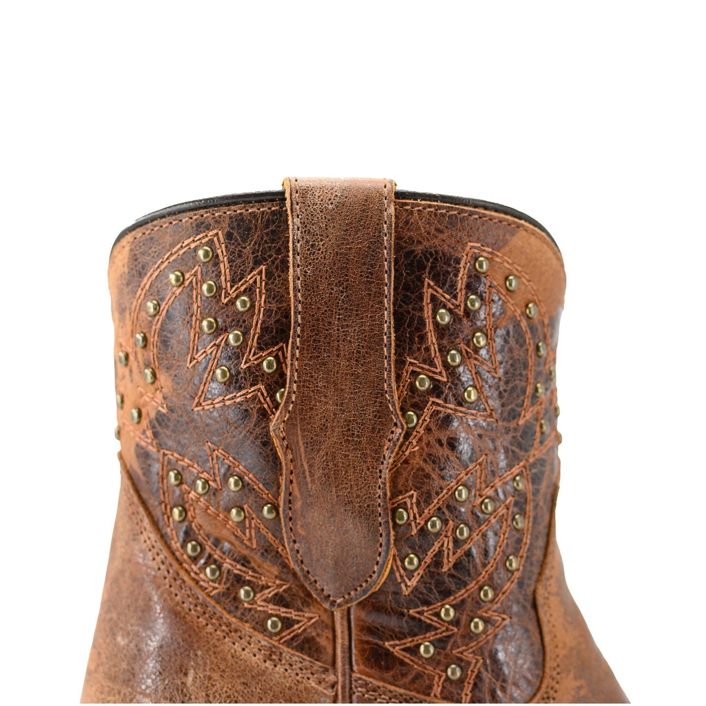 Distressed brown leather and bronze studs: a true wardrobe essential. Rugged yet stylish, this boot is built for comfort, everyday wear, and effortless Western flair. The Benatar is a timeless piece with character in every step.