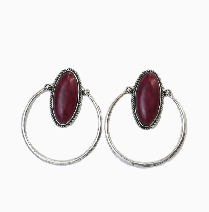 ABCO Turquoise Oval Post Earrings with Hoop Accent