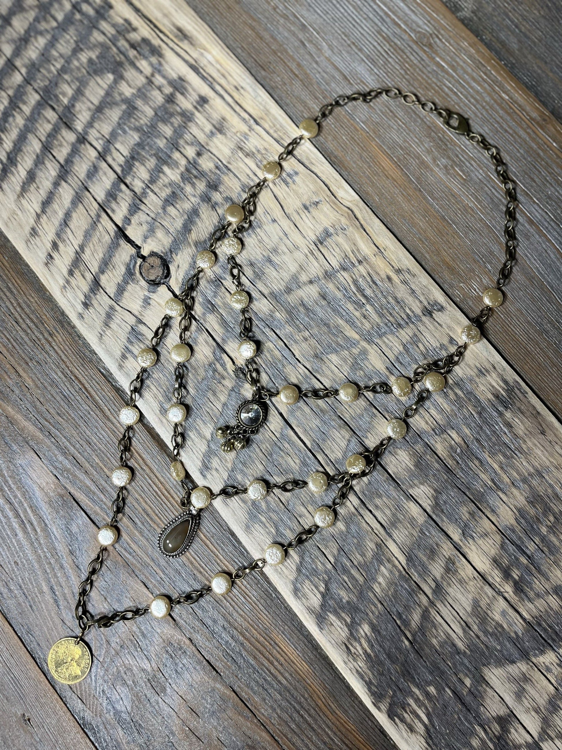 AMY KAPLAN Triple Coin Pearl Necklace