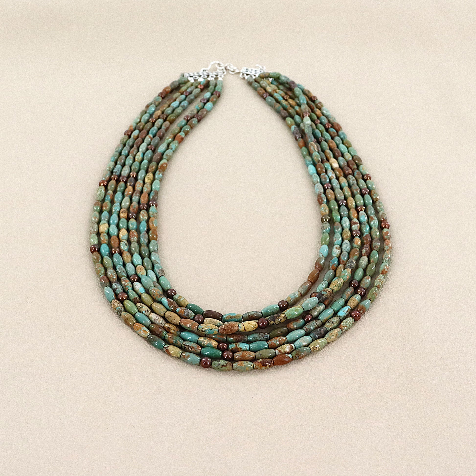 PAIGE WALLACE 7 Strands Green Turquoise Tubes With Small Brown Rice Pearls Necklace