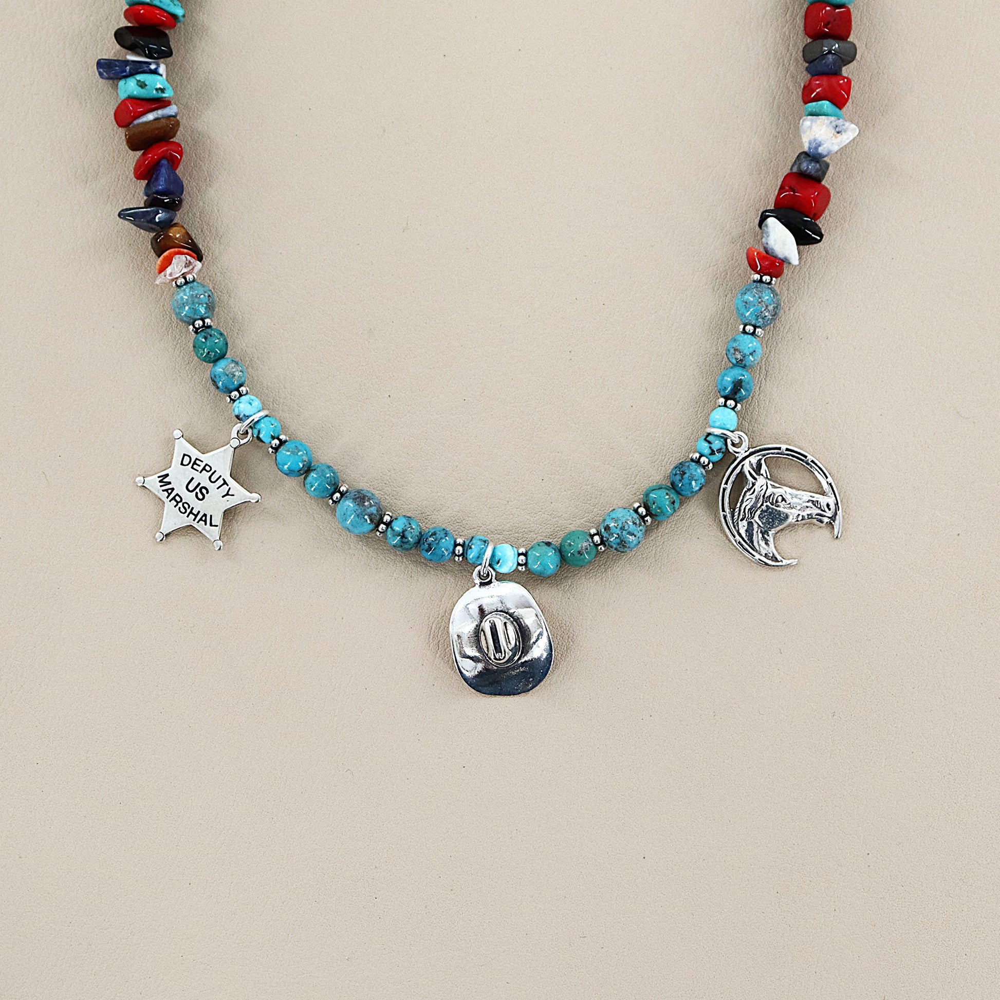 PAIGE WALLACE Multi Stones 3 Charm Necklaces