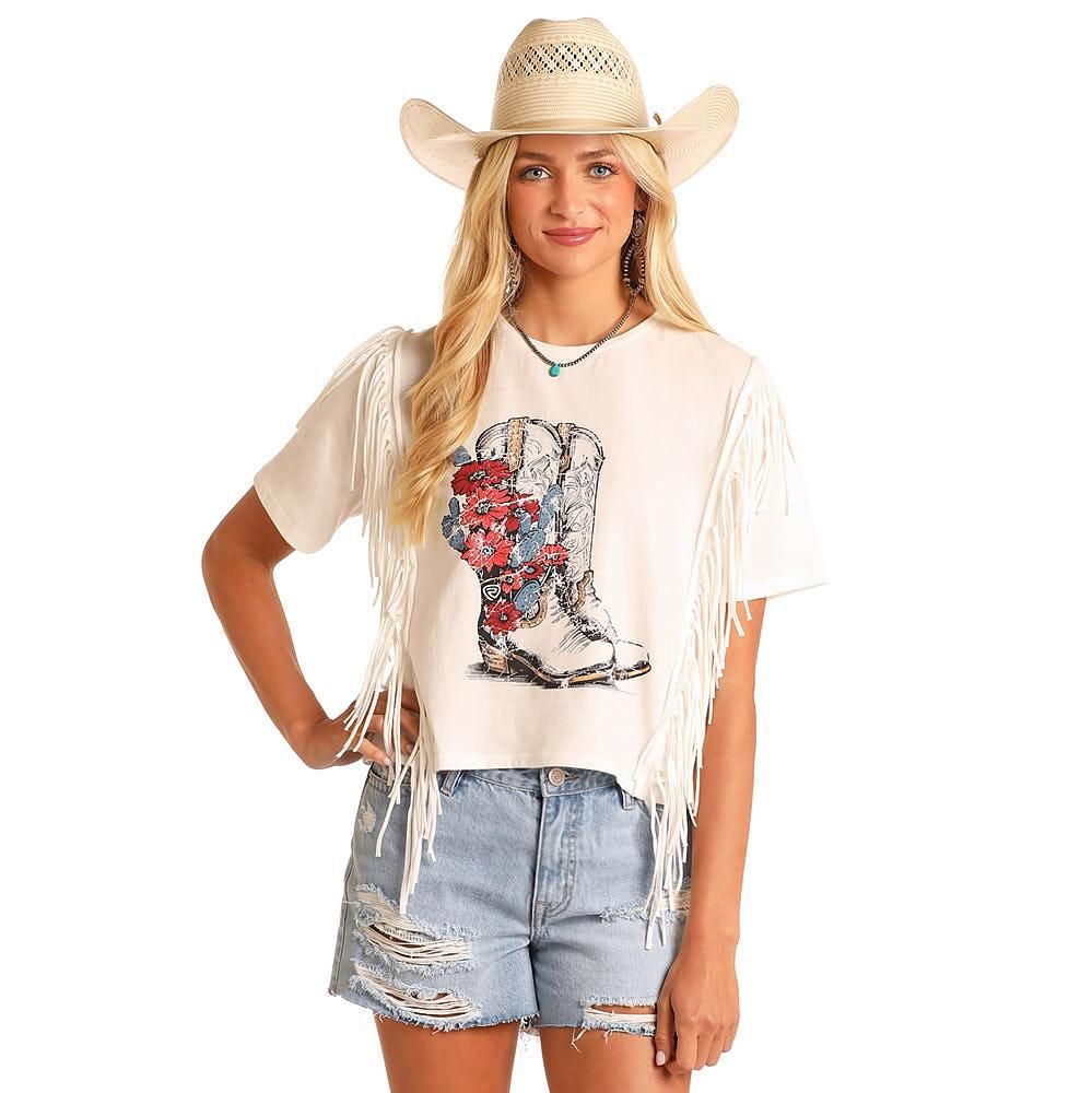 ROCK & ROLL Graphic T-Shirt with Fringe