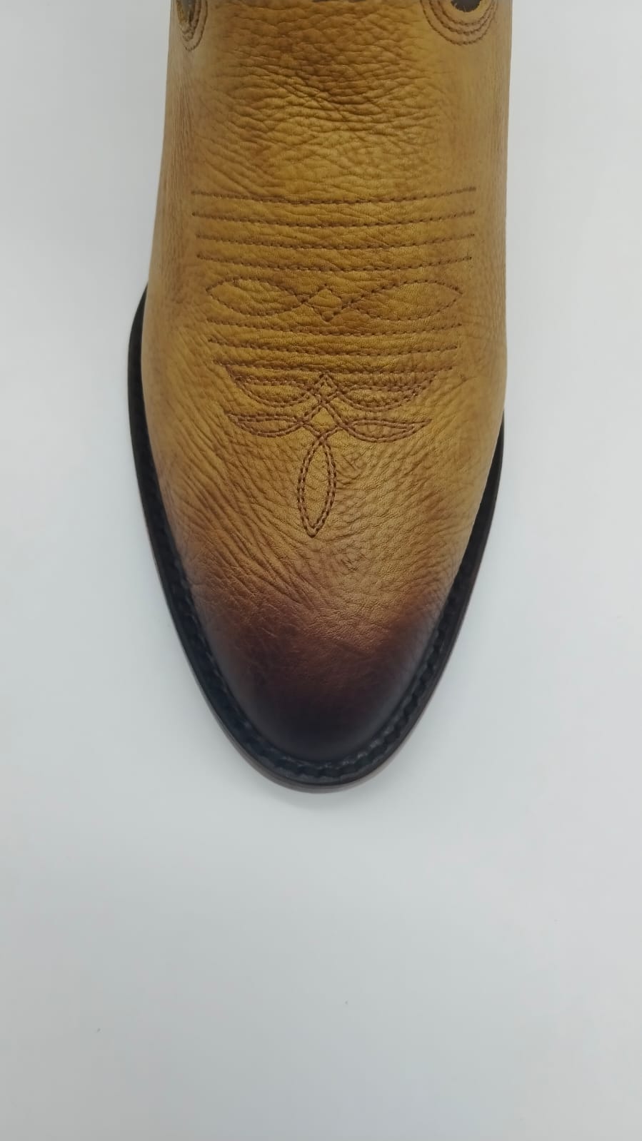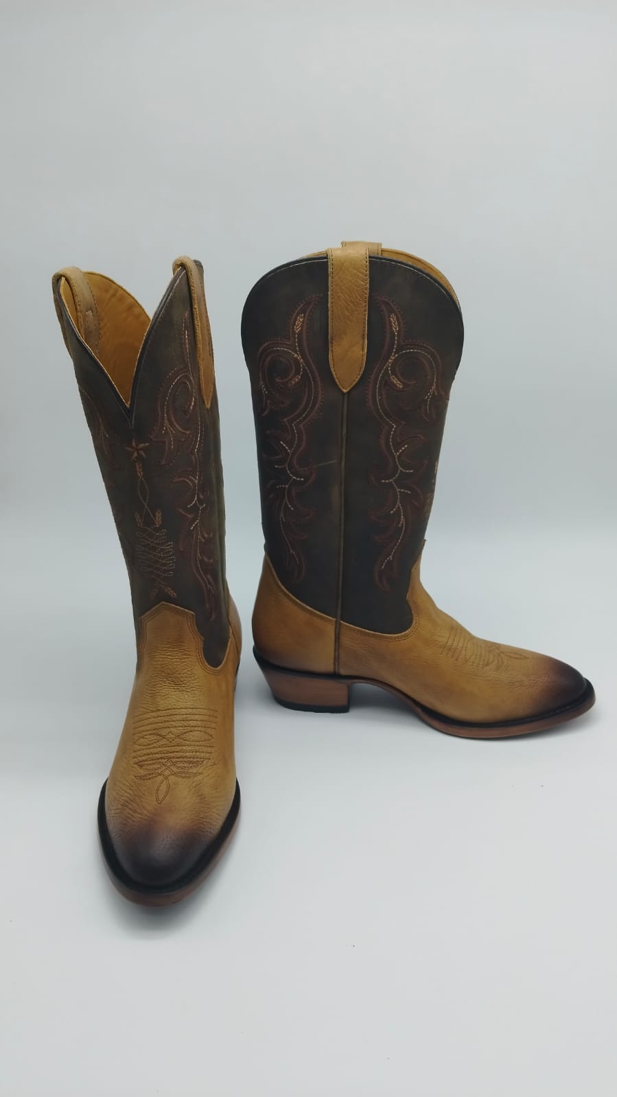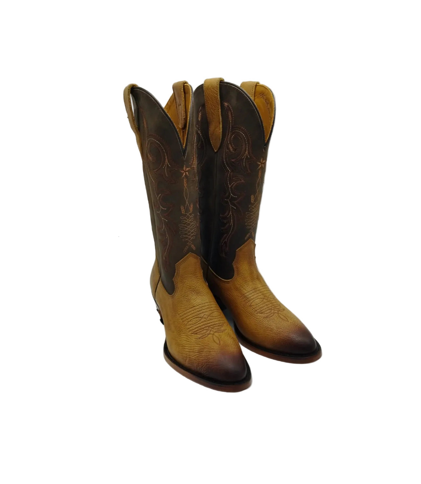 Wesley is a tribute to leadership, agriculture, and quiet strength. A Lone Star anchors the design while looping center embroidery honours Texas rodeo heritage. Horn-shaped motifs and fur-curl edge details reference the livestock that built the Houston Rodeo from the ground up. Textured leathers on the vamp and heel add depth and durability, while wheat accents speak to Texas farming and economic legacy. Offered in a subtle, everyday colour way, Wesley is a commemorative boot that works just as hard as it honours.